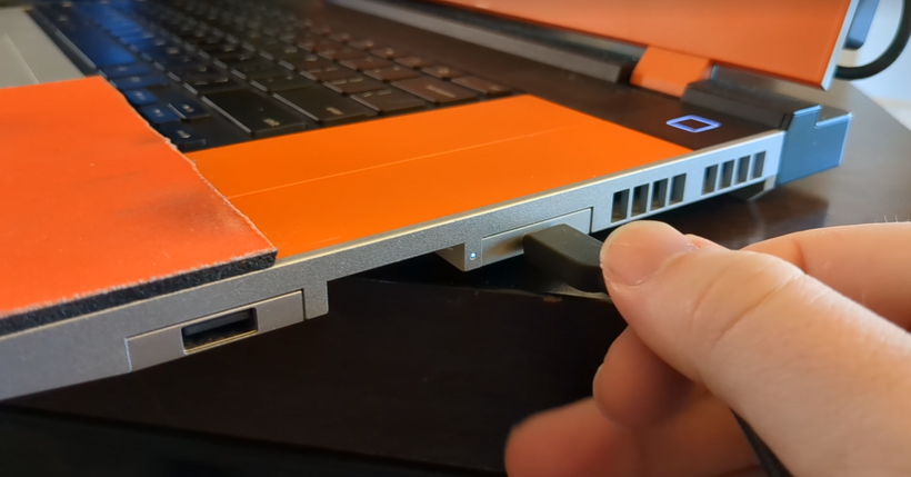 Most of the time when I'm gaming, I'll use my pair of Audeze Maxwells, a wireless headset (not sponsored). As it turns out, the dongle for that headset fits almost perfectly in the expansion card slot! This makes it incredibly easy to game on the couch with the laptop on my lap without needing to worry about putting too much pressure on the dongle.